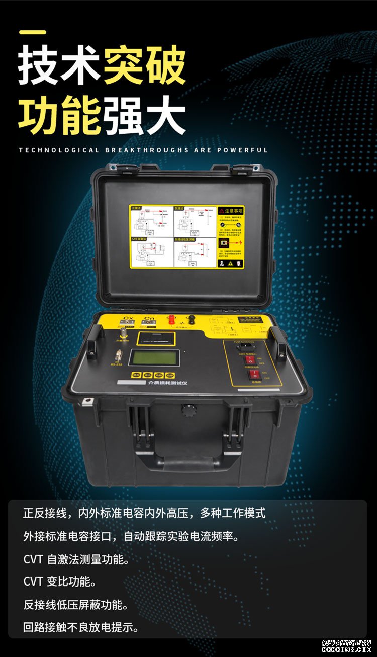 tgδ范围:不限,分辨率0.001%,电容、电感、电阻三种试品自动识别。